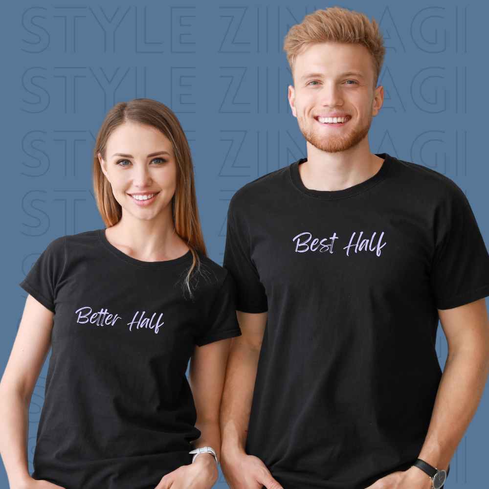 Show off your bond with our “Better Half – Best Half” Couple T-Shirts. A fun and stylish way to express your love, these tees offer ultimate comfort and a perfect fit for couples.
