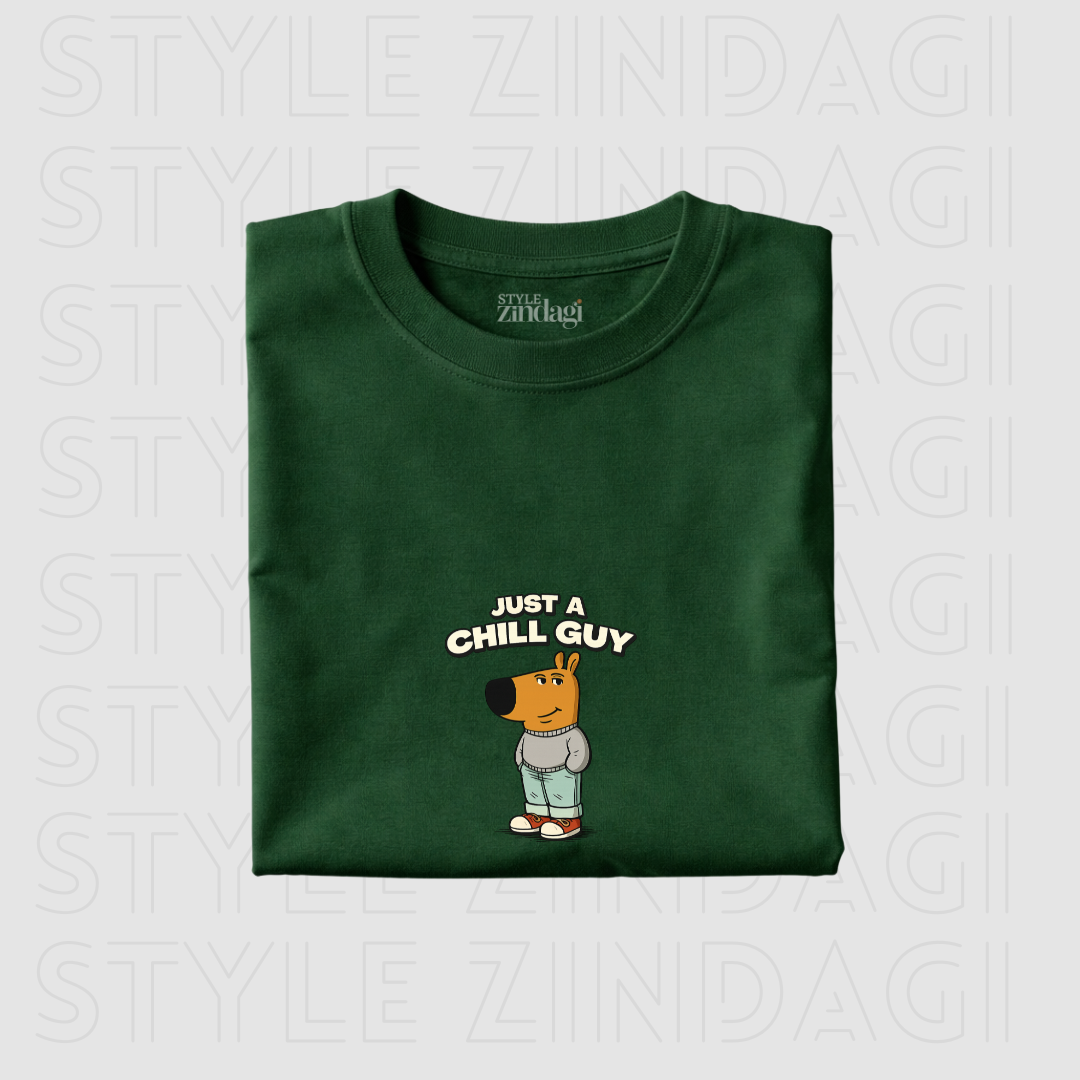 โ€œJust a Chill Guyโ€ design with a relaxed cartoon vibe and bold, clean typography that feels simple, cool, and effortless.